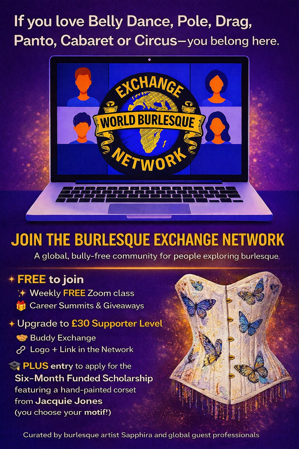 (This is invaluable including an International Buddy Support, World Record Logo & Link Supporter for World Burlesque Day 2026, interactive map and free weekly Zoom mini-class on Skool.)